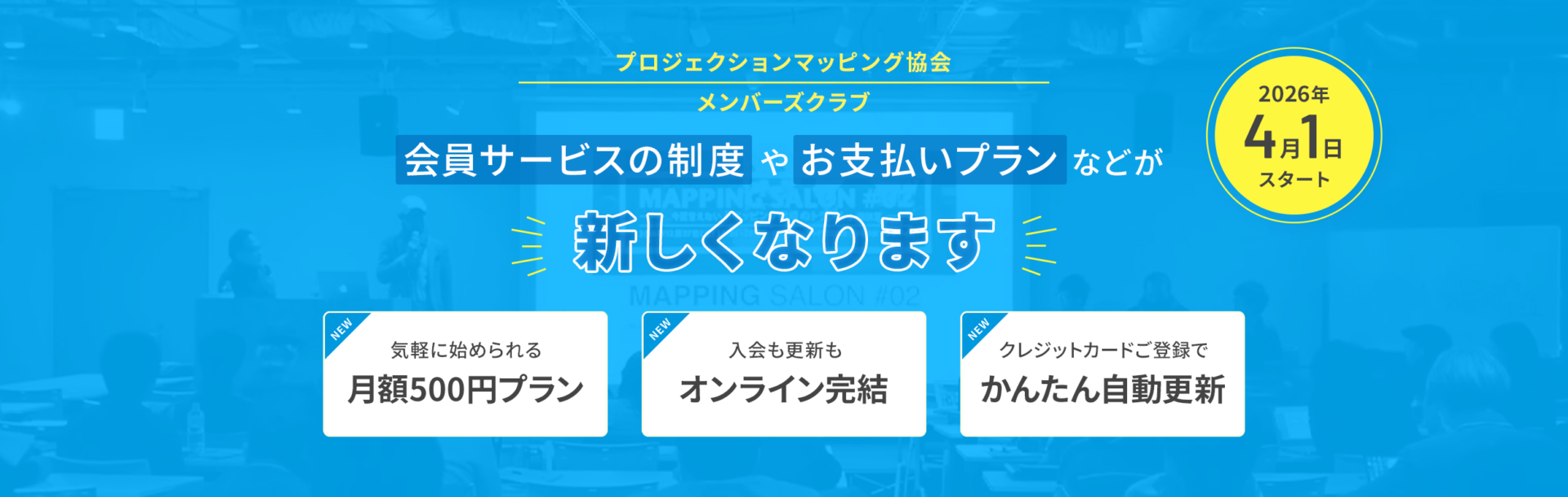 2026年4月1日より、プロジェクションマッピング協会「会員」の名称を「メンバーズクラブ」と改称しスタートします。