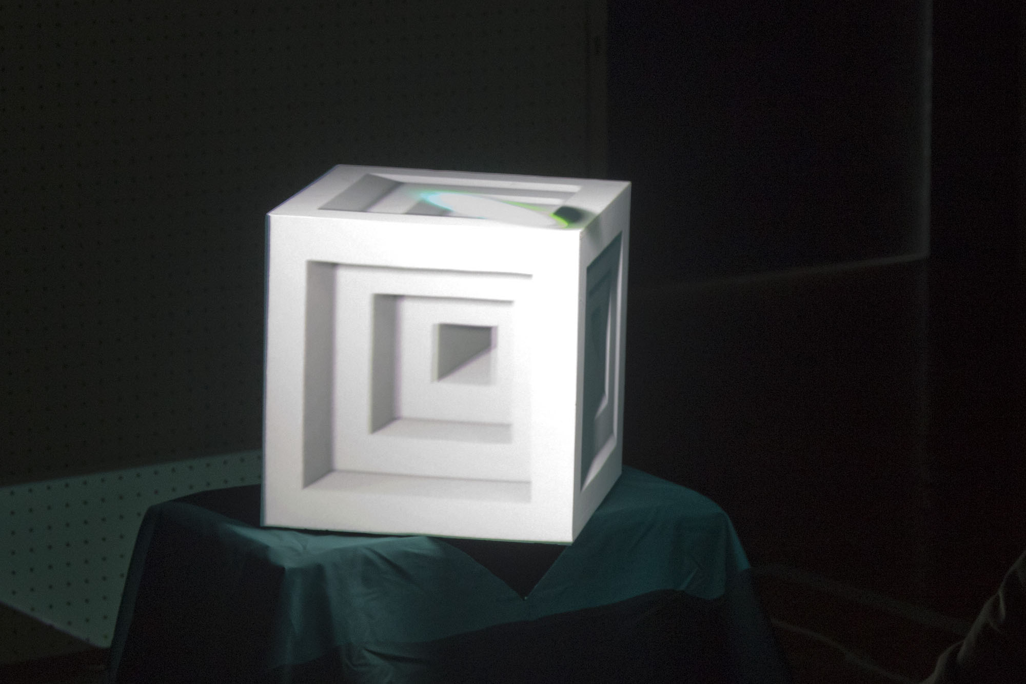 30cm四方の白い箱が、S3D映像によるプロジェクションマッピングで、空間ごと変貌していくという強烈な作品です。S3Dとは、「Stereoscopic 3D」の略で「立体視」のことを意味します。立体物にS3D映像を投影するとどうなるか?はたしてあなたの脳はこの体験に耐えられるでしょうか?他では決して見られない、新しいプロジェクションマッピングの可能性を是非この機会に体験ください!