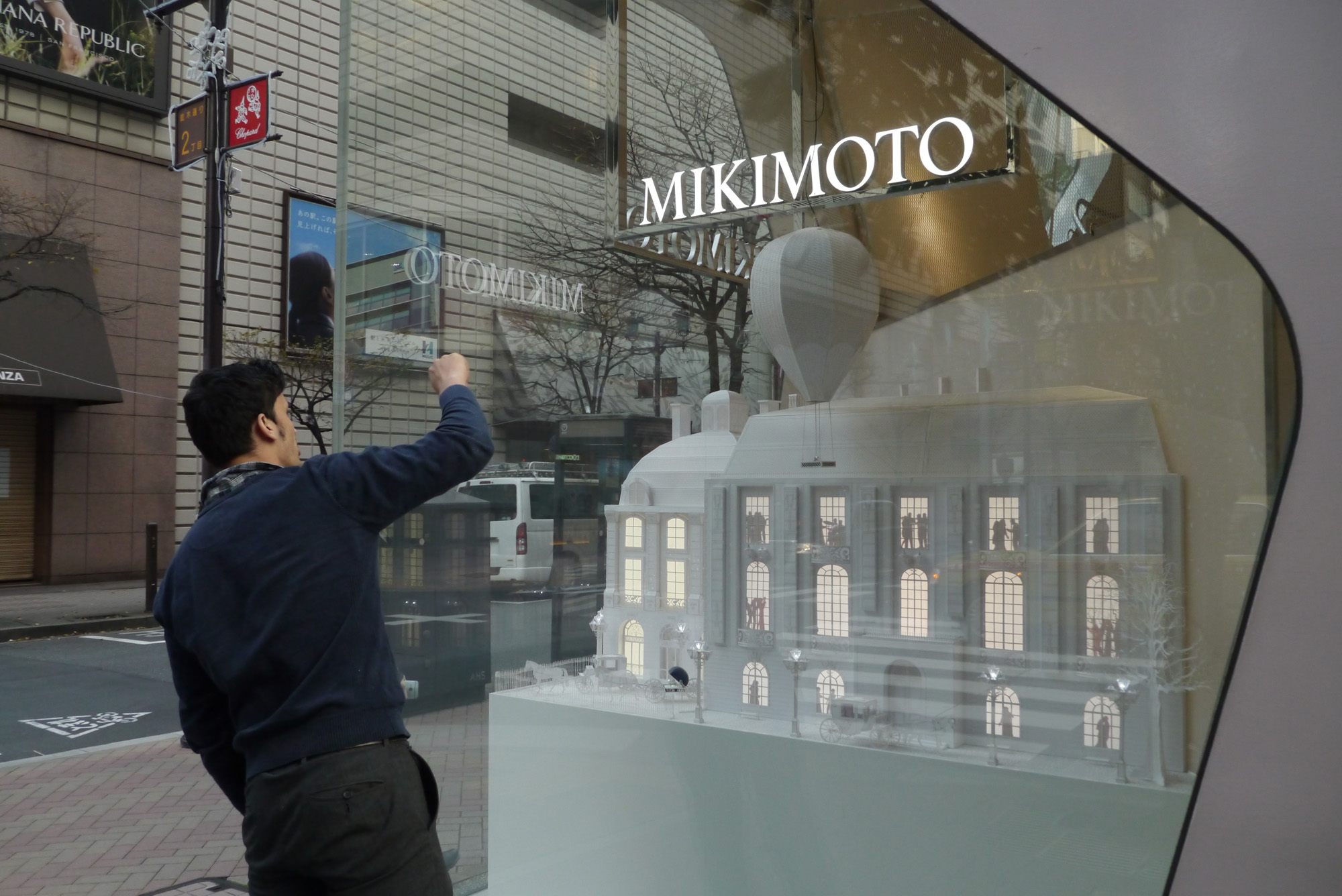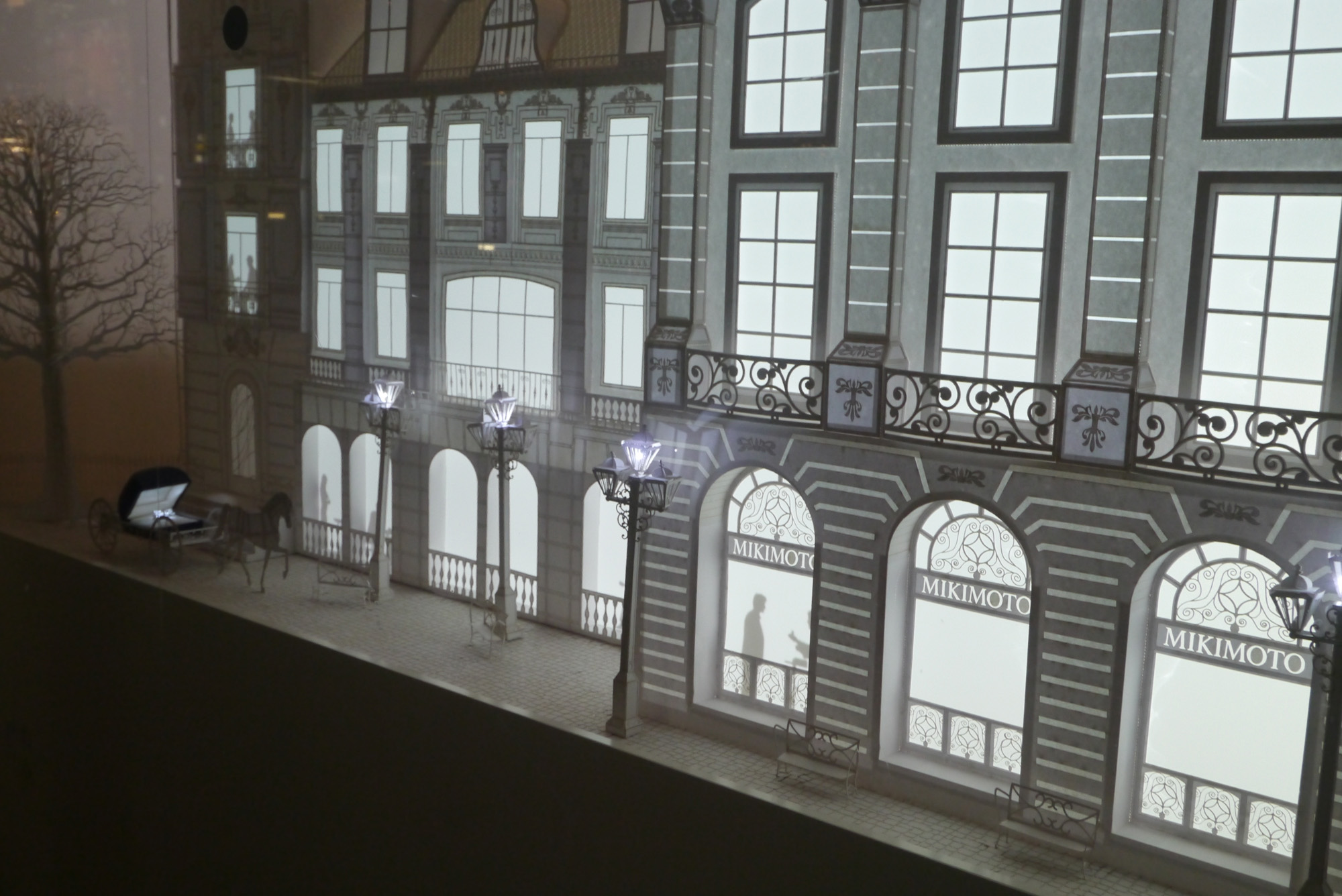 2015年11月13日からMIKIMOTOさんの銀座2丁目にあるディスプレイにおいて、Davy and Kristin McGuireさんらに新規で制作してもらったペーパークラフトの建築にプロジェクションマッピングした作品を制作展示いたしました。お二人はペーパークラフトとプロジェクションマッピングの組み合わせで世界を代表するプロジェクションマッピングのクリエイターです。今回は初めて日本でのオリジナル作品の制作とその発表展示となりました。建物とバックのスクリーンには合計5台のプロジェクターでプロジェクションマッピングされており、とても幻想的でそして心温まるラブロマンスが描かれております。