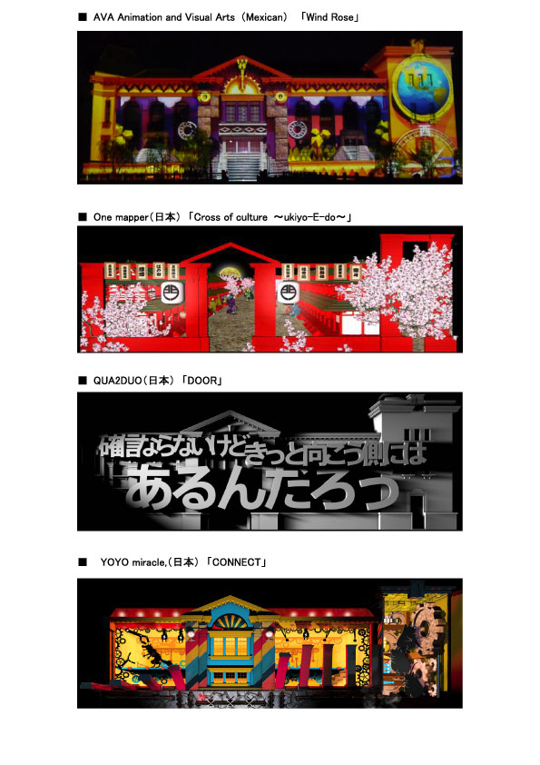 新潟県新潟市で2年連続で行われました「プロジェクションマッピング国際コンペティション」ですが、9月15日金曜日からのシルバーウィークに行われる「光の饗宴」で、過去2年間の受賞作品およびゲスト作品を新潟市にある「みなとぴあ」にて上映いたします。