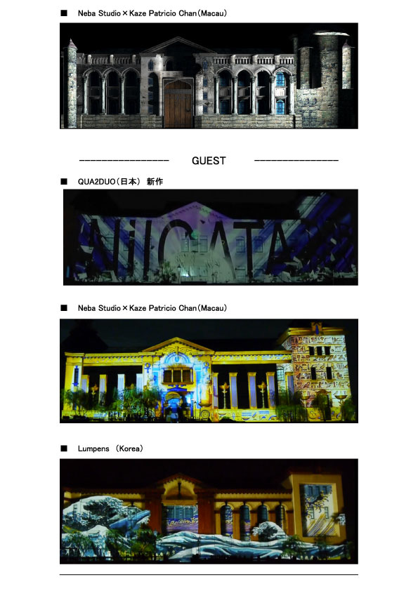 贅沢なマッピングの作品群が見られるまたとない機会ですので、是非シルバーウィークは新潟へいらしてください!光・映像と音楽・ダンスのコラボレーション公演を開催いたします。